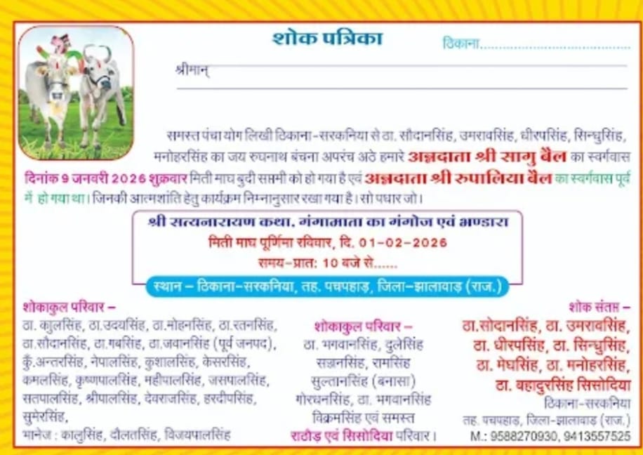 शोक में भी गुप्ता परिवार बना मिसाल भवानीमंडी/जगदीश पोरवाल। कहते हैं सच्चा परोपकार वही है, जो सबसे कठिन घड़ी में भी मानवता का साथ न छोड़े। झालरापाटन में गुप्ता परिवार ने यही कर दिखाया। परिवार पर दुखों का पहाड़ टूटा, लेकिन उसी क्षण उन्होंने ऐसा निर्णय लिया, जो दो नेत्रहीनों के जीवन में स्थायी प्रकाश बनकर पहुंचेगा। मेड़तवाल समाज झालरापाटन के पूर्व अध्यक्ष सूरजमल गुप्ता की धर्मपत्नी ललिता देवी शनिवार रात्रि को पैर फिसलने से छत से नीचे गिर गईं। सिर पर गंभीर चोट और अत्यधिक रक्तस्राव के कारण उन्हें तत्काल कोटा ले जाया जा रहा था, लेकिन रास्ते में ही उन्होंने अंतिम सांस ली। यह समाचार परिवार और समाज के लिए अत्यंत हृदय विदारक था। घर पर पार्थिव शरीर पहुंचते ही शोक का माहौल छा गया। रोते-बिलखते परिवार के बीच भी सूरजमल गुप्ता ने साहस का परिचय देते हुए पुत्र अशोक और निर्मल से ललिता देवी के नेत्रदान को लेकर चर्चा की। अशोक गुप्ता पूर्व से ही भारत विकास परिषद भवानीमंडी के नेत्रदान अभियान से जुड़े रहे हैं, इसलिए परिवार ने इस पुनीत कार्य के लिए सहमति दे दी। दामाद मोहित गुप्ता के माध्यम से नेत्रदान संयोजक कमलेश गुप्ता दलाल को सूचना दी गई। सूचना मिलते ही शाइन इंडिया फाउंडेशन, कोटा के नेत्र उत्सरक डॉ. कुलवंत गौड़ ज्योति-रथ के साथ प्रातः झालरापाटन पहुंचे। परिवारजनों और समाज के लोगों की उपस्थिति में विधिवत प्रक्रिया पूरी कर दोनों कॉर्निया सुरक्षित प्राप्त किए गए। डॉ. कुलवंत गौड़ ने बताया कि ललिता देवी का कॉर्निया पूरी तरह स्वस्थ पाया गया है। इसे आई बैंक जयपुर भेज दिया गया है, जहां से यह दो असहाय नेत्रहीनों को नई दृष्टि प्रदान करेगा। नेत्रदान की प्रक्रिया में पदम गुप्ता, अतुल गुप्ता, हरी गुप्ता और अजय गोयल सहित समाज के कई लोगों ने सक्रिय सहयोग किया। इस हृदय विदारक घटना की सूचना मिलते ही कस्बे और आसपास के क्षेत्रों से बड़ी संख्या में लोग शोक संवेदना व्यक्त करने पहुंचे। सभी ने गुप्ता परिवार के इस निर्णय की सराहना करते हुए कहा कि यह कदम समाज के लिए प्रेरणास्रोत बनेगा। नेत्रदान उपरांत शाइन इंडिया फाउंडेशन द्वारा परिवार को प्रशस्ति-पत्र प्रदान कर सम्मानित किया गया। डॉ. कुलवंत गौड़ ने कहा, “नेत्रदान ऐसा महादान है, जो किसी के जीवन के अंधकार को दूर कर देता है। गहन शोक के क्षणों में लिया गया यह निर्णय परिवार के लिए भी आत्मिक संतोष का कारण बनता है।” ललिता देवी भले ही इस संसार से विदा हो गईं, लेकिन उनकी आंखों की रोशनी अब दो घरों में नई सुबह बनकर पहुंचेगी। यह निर्णय न केवल एक श्रद्धांजलि है, बल्कि समाज को नेत्रदान के प्रति जागरूक करने वाला प्रेरक संदेश भी है।