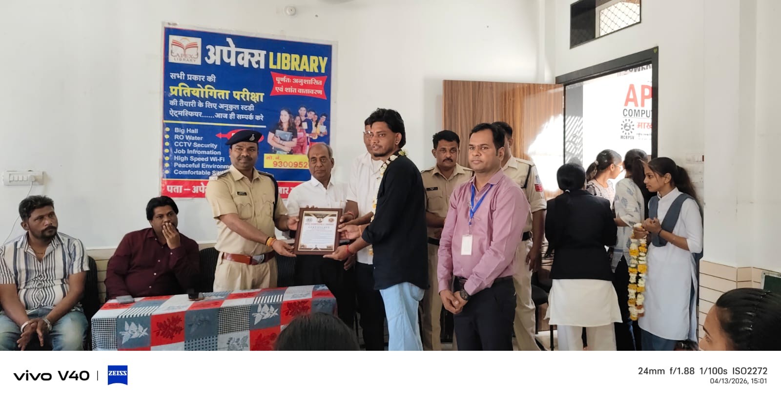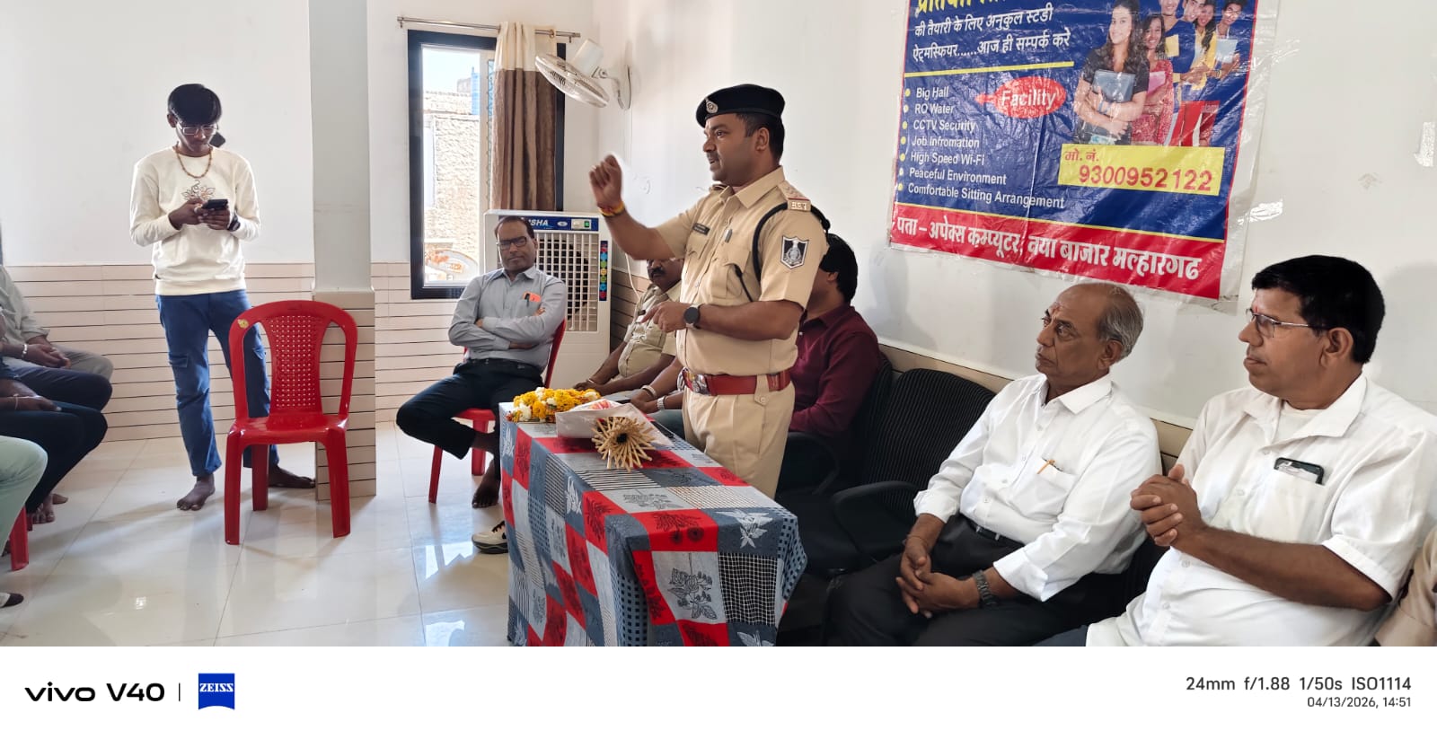 कार्यक्रम में थाना प्रभारी मोहन मालवीय ने विद्यार्थियों को संबोधित करते हुए कहा कि सफलता कभी आसान नहीं होती। यह प्रतिस्पर्धा का दौर है, जिसमें निरंतर मेहनत, सेल्फ स्टडी और लाइब्रेरी का सहयोग सफलता दिलाता है। उन्होंने कहा कि यह विद्यार्थियों की उपलब्धि है और यह सफलता का अंतिम पड़ाव नहीं बल्कि शुरुआत है।